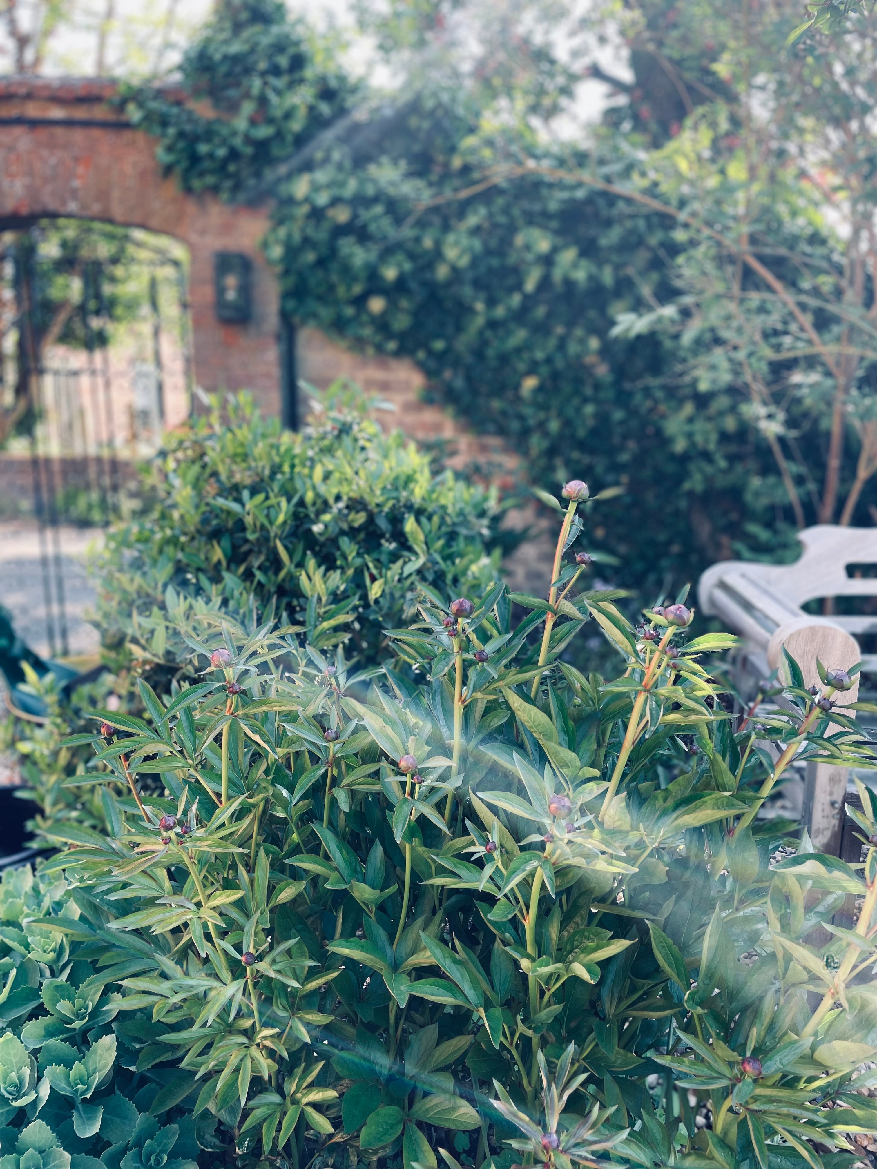 The garden is entirely enclosed by a beautiful brick wall. It offer a tranquilty all year, and it quietly feeds our inspiration